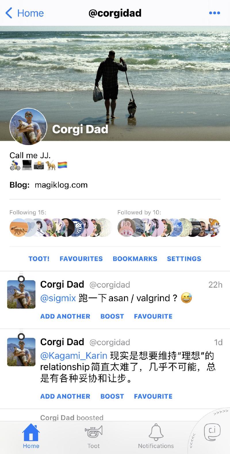 好友大松鼠开放了他的长毛象实例 c7.io,而我对长毛象这种联邦结构的社交网络十分认同,于是便加入了他的实例。从最开始,很自然地使用了官方iOS客户端。十分简洁易用, 倒也能满足我的需求。只是这官房客户端有一个十分恼人的bug——接收到通知之后,从通知点进去,有时候app会闪退。终于有一天我受不了了,于是开始了对第三方iOS客户端的探索。
