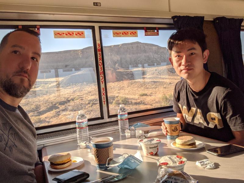 The train went through Salt Lake City at midnight. It woke up me with travelers getting on/off the train. The train spent the whole day navigating in canyons and mountains. We spent a lot of time on the observation train to get a really nice view. But the reflection on the windows ruined most of my pictures. I wish I had a polarized filter!