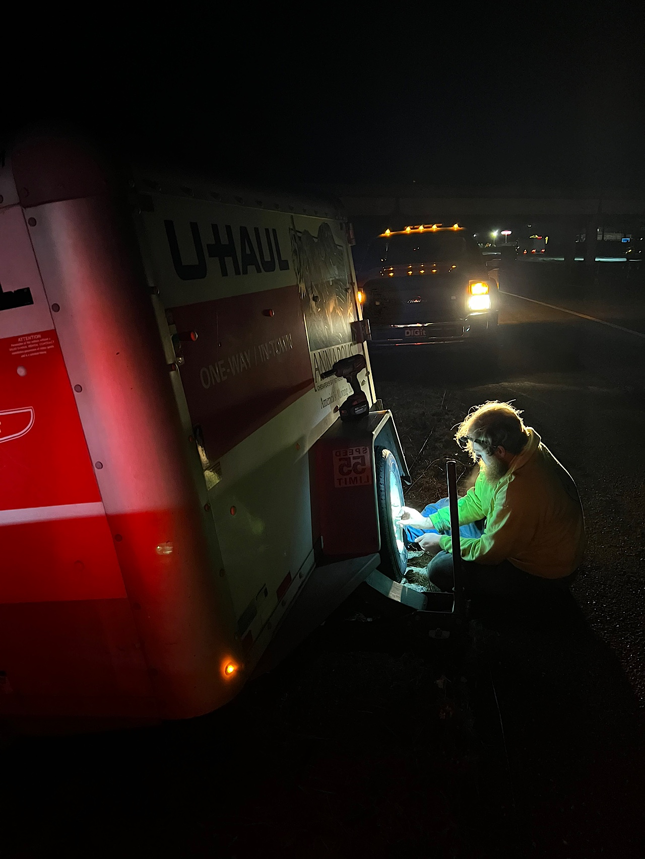 There was nothing we can do except waiting. One hour passed and no sign of anybody. A Tennessee Highway Patrol cop stopped and asked us what was wrong. We talked with him (and he has a really thick southern accent which I think is really cute) and he said, we should call THP if nobody came within next hour and he’d send someone for us. We reached out to U-Haul and they sent someone else… and then the first guy called saying the traffic was really bad getting to us.
