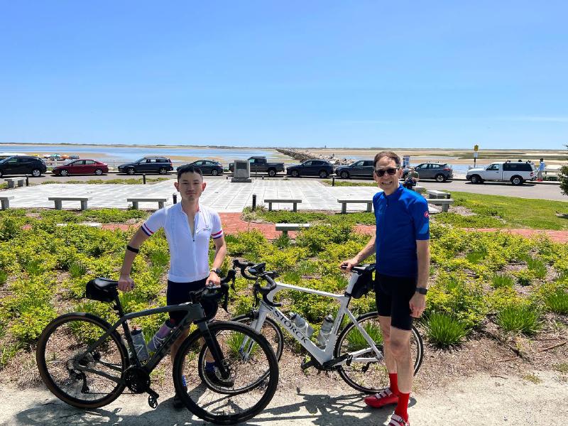 A century ride is 100 miles ride within one day. When I just started cycling, I was really happy with my 10 miles ride on Deer Island with beautiful ocean views. 100 miles just seemed crazy. But I got stronger and stronger and started doing longer and longer rides - Boston to Salem round trip in 90 degree summer day; Boston to Concord round trip along Minuteman, I decided I would do a “Metric Century” in 2022 - 100 km from Kingston / Plymouth to Eastham. Longer rides come with their own challenges. The most difficult one is the support: food, hydration, bathrooms, and of course, emotional support. It is a blessing that Josh supports me 100% for my cycling. On my metric century ride, he spent the whole day and stopped at 3 different places just waiting for me to arrive. I’d chat with him, eat snacks and fruits he brought in the cooler, and drank Gatorade. I can’t thank him more for the support.