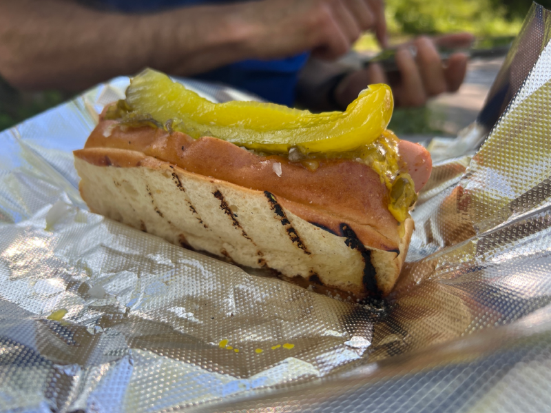 While he was on the phone talking with his wife and parents, I told him I was gonna get a hotdog. So I did, and with a glass of iced lemonade. He said he forgot to ask me to buy him some drinks. So he went to the food truck to do so. But, he had a hot dog with him when he returned. :) That was the most delicious hot dog I’ve ever had in my whole life!